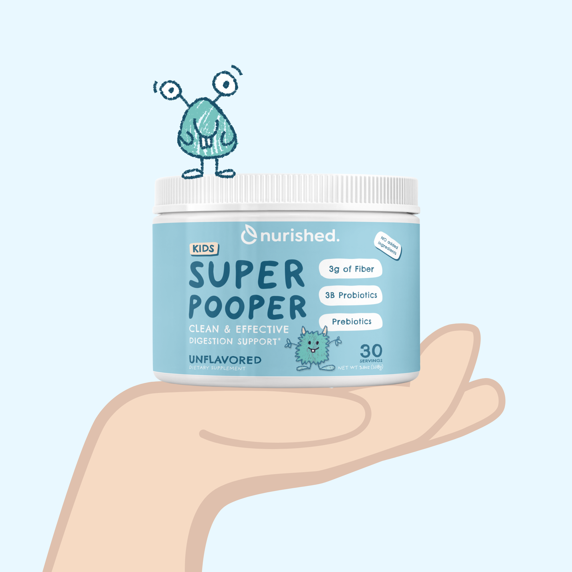 Ensuring kids get the daily nutrition needed each day is difficult, especially if their struggling with digestion and/or constipation. Super Pooper is a tasteless boost of fiber, probiotics, and prebiotics that can be added to their favorite drink, smoothie, or Mighty Milk.